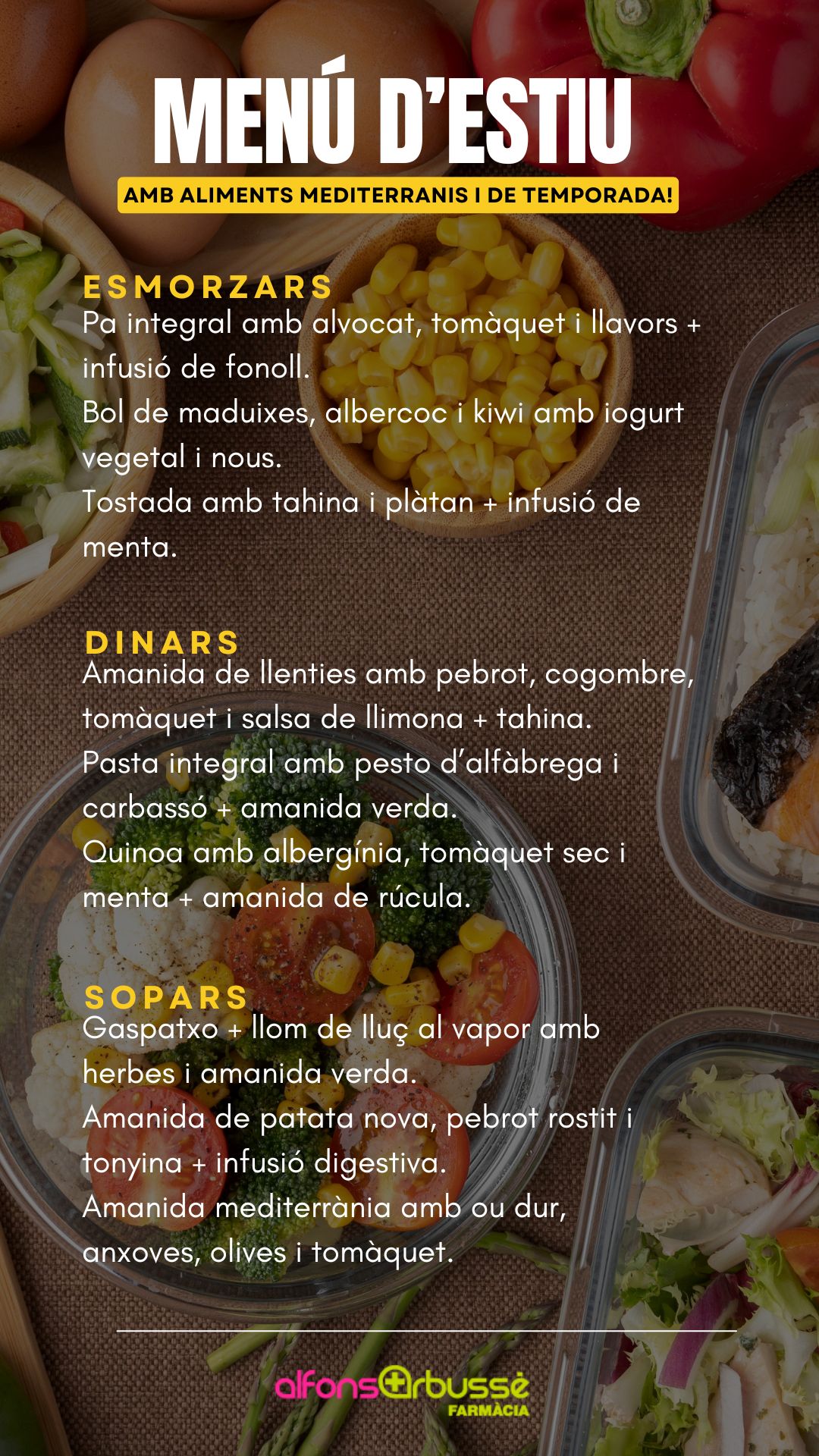 - Antioxidants: fruites vermelles, tomàquet, pebrot, espècies (cúrcuma, gingebre).